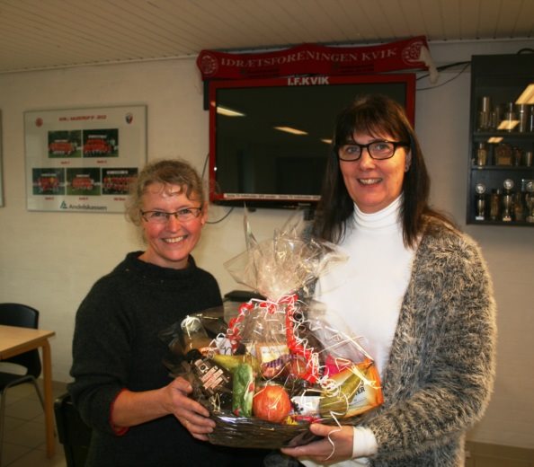 - Karin Holt (TV) gav Lena Amstrup (TH) en stor og anerkendende cardeau for den ekstraordinære indsats Lena har stået for i 2015 - uden hende var der ikke en gymnastik afdeling i IF-KVIK